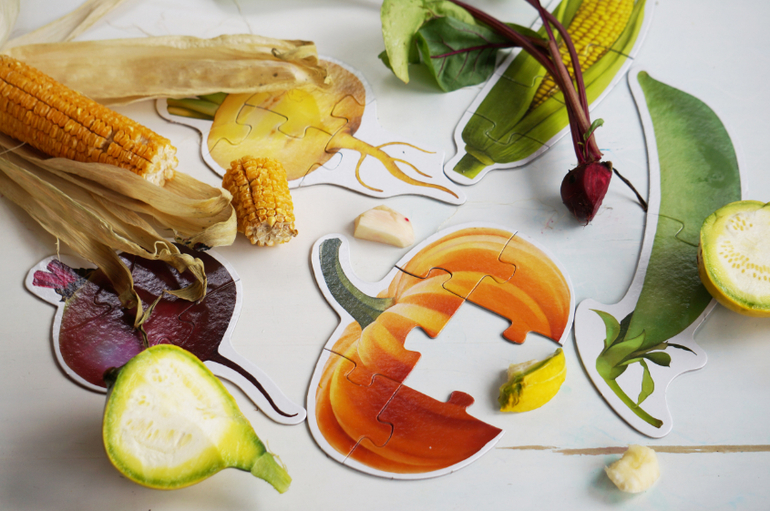 Развитие детей второго года жизниНе так давно Маша стала потихоньку интересоваться пазлами, хотя, конечно, складыванием, это назвать еще нельзя. Мне очень нравится русская серия макси-пазлы. Мы начинали с животных, и теперь на повестке дня овощи, а за окном дачный огород, где все есть живьем. Я заранее набрала нужные мне плоды, уложила в миску, разложила сложенные пазлы (очь их видела впервые). Был такой восторг, что ребенок просил все дегустировать, так что теперь мы знатоки сырой тыквы и свеклы. Волосня от кукурузы - отдельный хит, в репку мы как-то играли,ну а горох мы очень любим таскать с грядки! Такой вот получился натур-продукт!