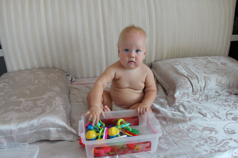 Давно не доставали погремушки, поэтому Катя провозилась с ними одна довольно долго.