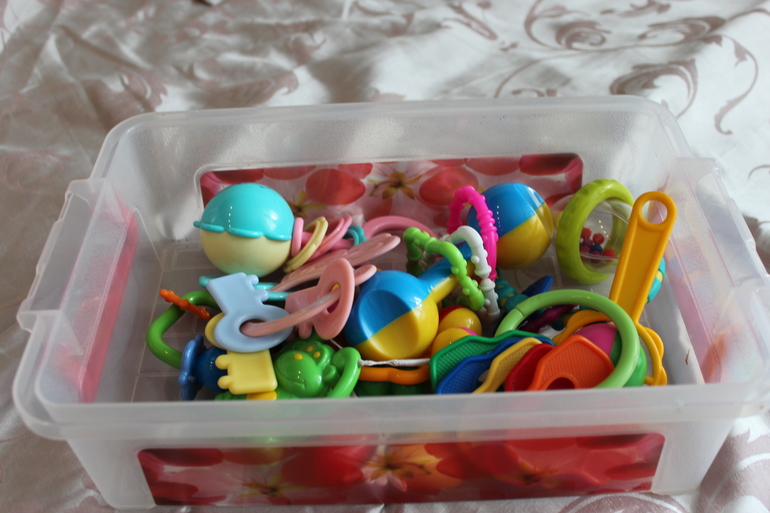 Когда игрушек не осталось, а я попросила дать еще погремушку, Катя посмотрела в пустую коробку и дала ее