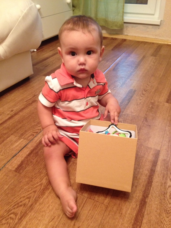 Развитие от 6-9 месяцевНедавно рассортировала все игрушки. Теперь у меня 3 коробки и одна большая корзина. Сами собой нарисовались 2 сенсорные коробочки для самых маленьких, в которые мы решили поиграть и изучить содержимое. А за наводку спасибо Ане)