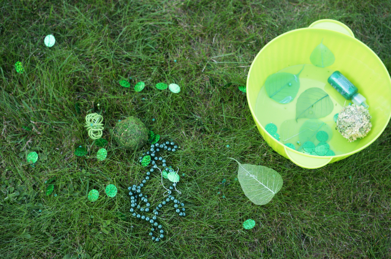 Развитие детей второго года жизниУ всех в разгаре осенние занятия, а мы как-то еще живем на даче, ловим последние теплые лучики солнца, и изучаем зеленый цвет! Расправились с основными базовыми - красным, желтым и синим, и вот напоследок осталась зелень уходящего лета! На этот раз в зеленой миске поселились разные бусинки, пайетки, шарики, листья, купленные в швейном магазине, а еще зеленый клей с блестками, который приставал к рукам, и Маша не хотела им особо рисовать. Зато мы удачно из этих компонентов составляли разные рожицы!А в завершении. все, как всегда, оказалось на земле! Такое вот зеленое занятие вышло!