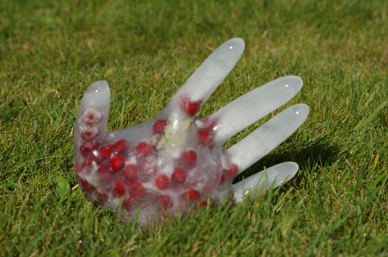 Развитие детей второго года жизниУ златовласки Ольги в дневнике есть чудная идея, как заморозить руки. Внутри резиновой перчатки с водой она помещала бусинки, поэтому они тонули и могли распределяться по пальцам, а я наморозила рябину, которая от легкости собралась на ладошках. Пальцы, кстати быстро отломились - больно хрупкие, но Машу очень увлек процесс посыпания льда солью, потом поливания кипятком, а потом уж и отковыривания ягодок. Лед на зубок мы попробовали, да и ягодки тоже. Так вот разнообразили свои художества на льду и игры со льдом .