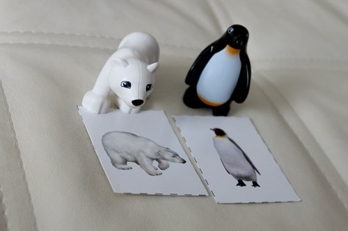 2 вариант.Кладу две карточки и две игрушки,нужно положить игрушку к своей карточке: