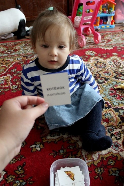 Каждый день раз по пять Ханя мне носит контейнер с карточками и требует показывать.Я их перемешиваю,добавляю новые периодически.Садится передо мной и я называю кто это: