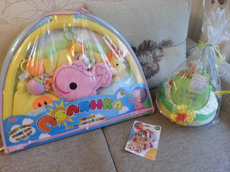 Развитие от 0-3 месяцевВот нам уже и 5 денечков и столько подарков надарили, что некуда ставить! :) все очень яркое и самое главное полезное! все тортики что называется" hand made"!