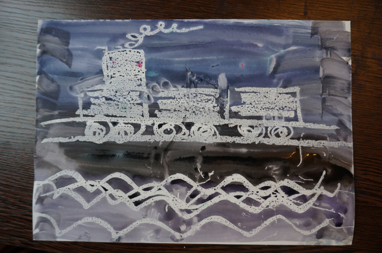 первый раз вижу, здорово,сажите восковый мел и акварель любые,Покупали в дет магазине?