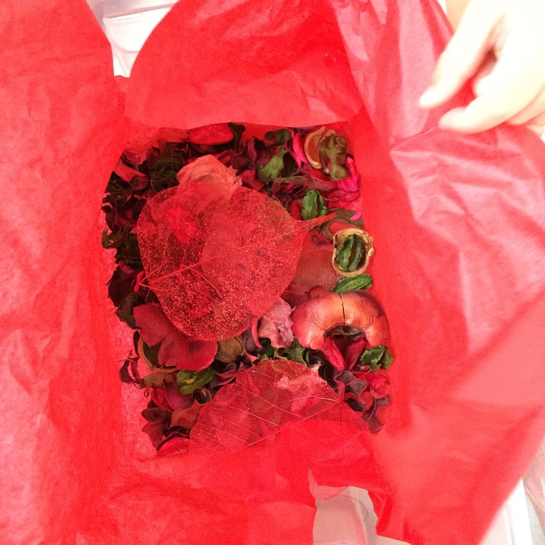 Ну и куда же без осенних наполнений. У нас была красная коробочка с сухоцветами. Часть сухоцвета у меня из подарочных упаковок Стендертс, а часть - саше из Икеи. И была еще коробочка с желудями/шишками/каштанами. У этой коробочки был нереальный аромат! Причем я сама не ожидала. Набрали на морозе еловых шишек, кинула дома их к остальному содержимому коробки, закрыла и забыла почти на неделю. А в тепле из этих шишек начали выделяться смолы. Мы как крышку открыли, так сразу и обалдели от такой ароматерапии! Правда весь материал потом пошел на выброс, тк то там, то тут, все стало липким))