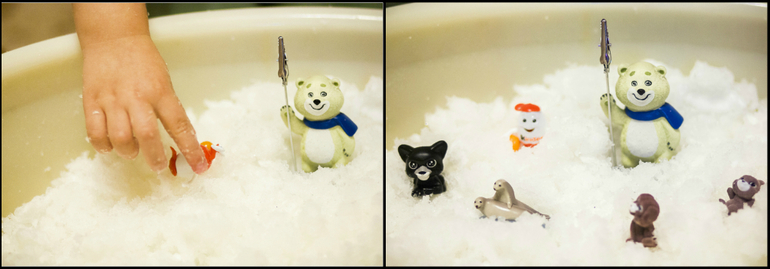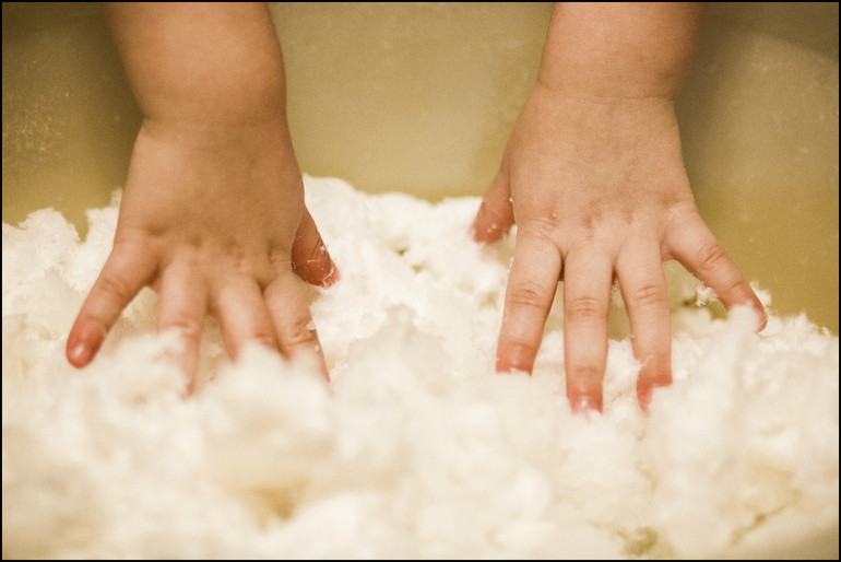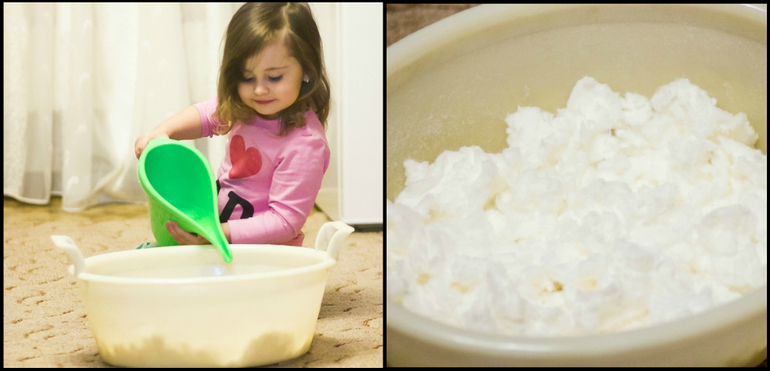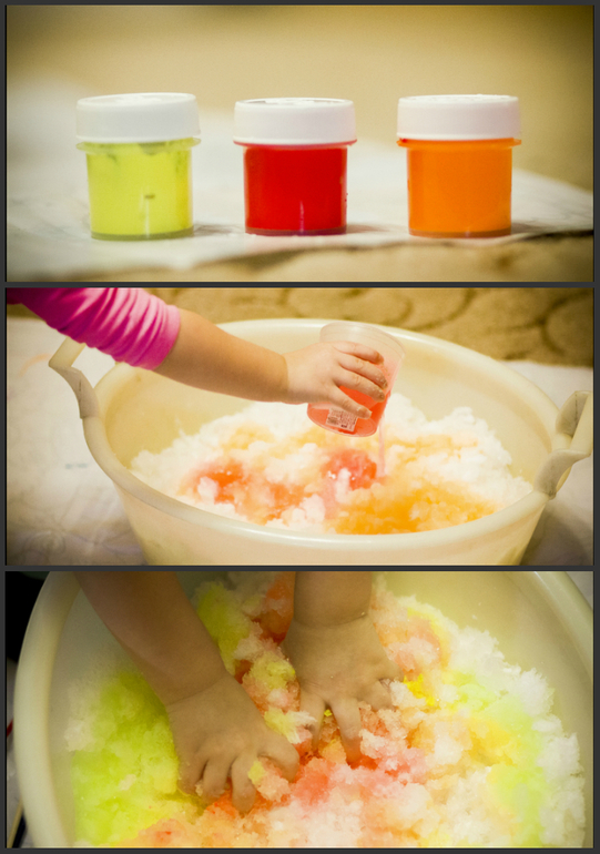 Потрошим подгузники, заливаем водой, мешаем руками и снег готов. БЕЗОПАСНО!