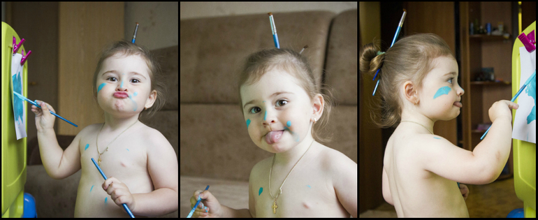 На первом месте у нас рисование и разукрашивание. Дочь в меня =) Я тоже в детстве рисовала везде, где можно было и где нельзя