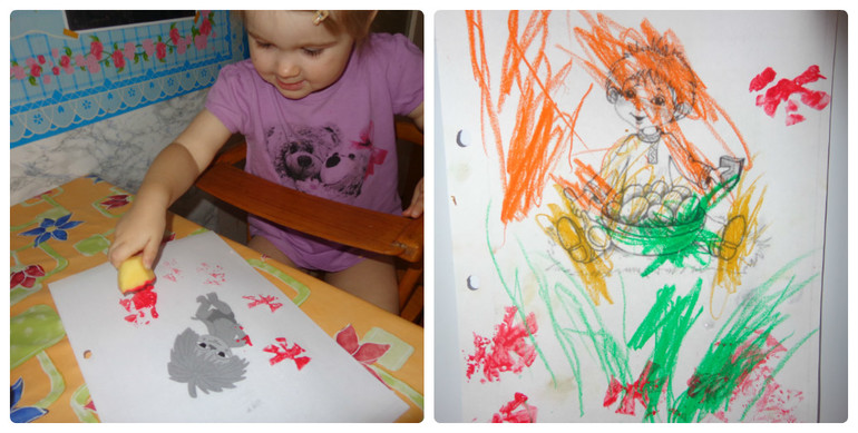 -А потом рисовали мелками и штамповали Антошке цветы картофельными штампами: