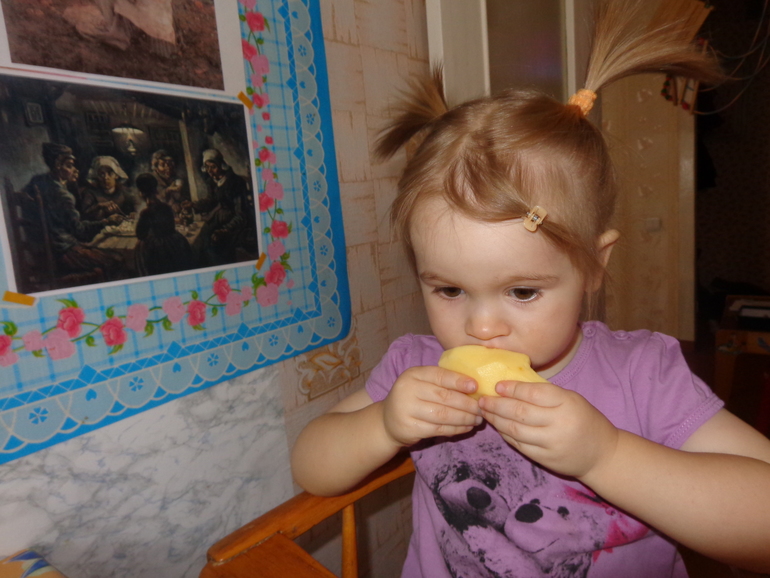 Конечно же не обошлось без пробы сырой картошки на вкус: