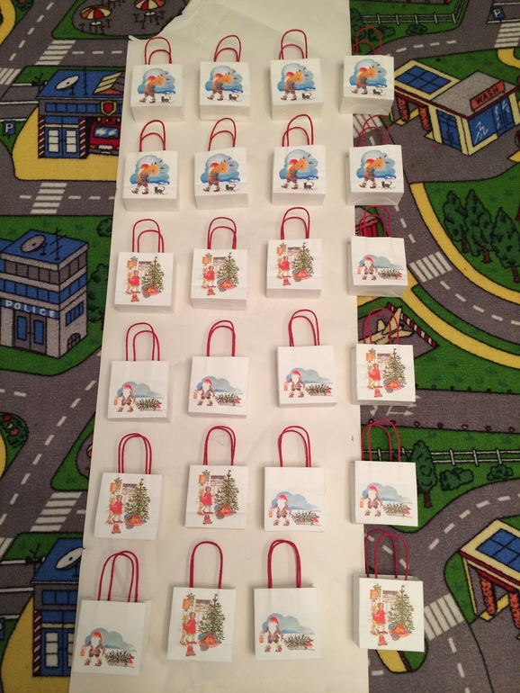Висят пакетики для адвент-календаря на 24 дня! Я сразу на них и запала! Тут же купила подарочки внутрь пакетиков. Скворечник, колокольчики и еще сладости в виде снеговиков. Распределю все по чуть-чуть.