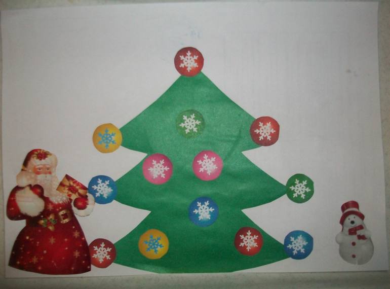 Новогодний калейдоскоп 2015В завершение нашего творчества ( тут и тут) покажем еще новенькие работы. Так как Максимка очень полюбил делать аппликации клеящим карандашом, в основном, их мы и делали: из цветной бумаги вырезала и приклеила елочку, а Максим украшал ее шарами, а потом и Деда Мороза со снеговиком приклеил
