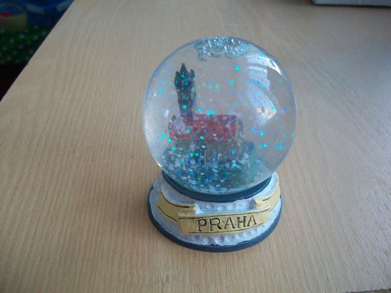 А еще у меня на полке стоят много стеклянных шаров со снегом с разных городов, куда я раньше ездила путешествовать. Мы трясли наши снежные шары и смотрели, как в них тихо падает снежок