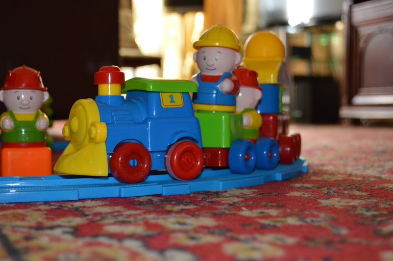 Набор этот, хоть и простенький на первый взгляд, ребенка поверг в полнейший восторг! Паровозик музыкальный, прекрасно едет по рельсам, никуда не съезжая и не заваливаясь, играет веселую мелодию. Включается и выключается очень просто - нажатием на трубу. Детали в виде конструктора, легко соединяются даже такими маленькими ручонками. В первые дни Катюша запускала поезд, а сама бегала за ним по кругу, радостно выкрикивая "Чух-Чух-Чух!".