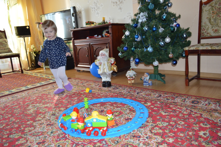 Немного о подарках. Расскажу о тех, которые Кате очень понравились и которые все эти дни являются ее главными развлечениями. Дедушка Мороз оставил под елочкой Катюше детскую железную дорогу.