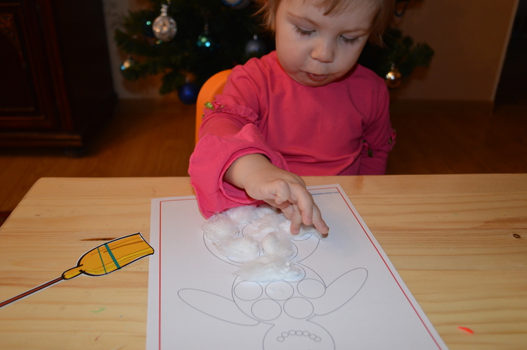 9. Аппликация. Тоже исключительно Катюшино творчество! Сама наливала из баночки клей и сама приклеивала ватные шарики.