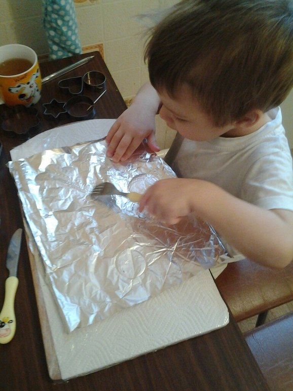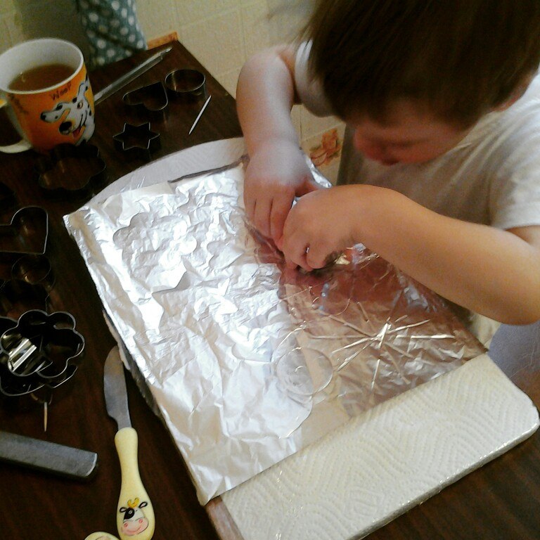 Художественно-эстетическое развитиеВспомнилось мне, как когда-то в моем детстве, я собирала фольгу от шоколадок и делала объемные рисунки. Одно из любимых занятий было у меня в то время. Участвуя в конкурсе, мне пришла идея повторить этот опыт с сыночком. И вот что у нас вышло.