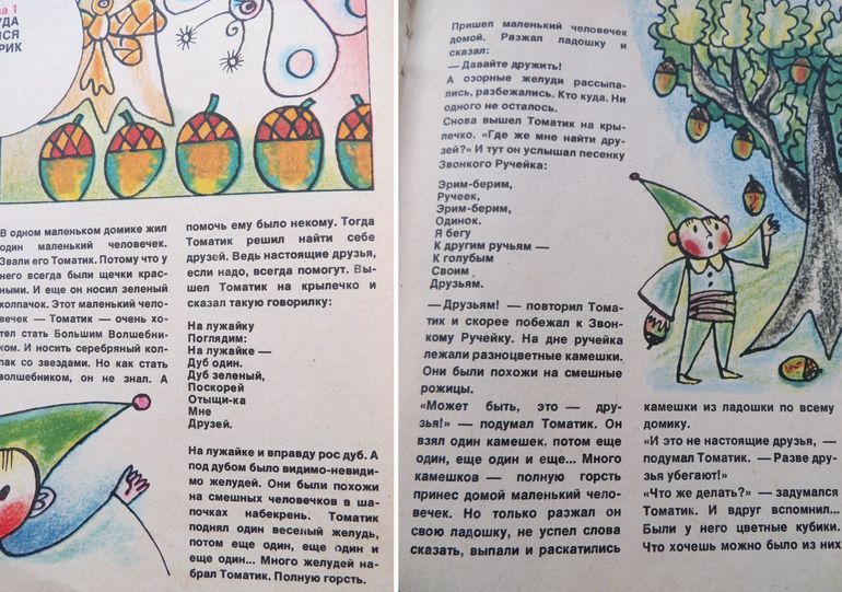 Услышал Томатик песенку одного Звонкого Ручейка и побежал к нему. На дне лежало много разноцветных камешков. Собираем как желуди и также рассыпаем.