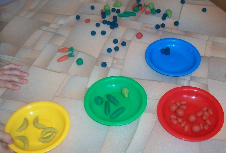 P.S. А еще сортируем по цветам: красные ягодки в красную тарелочку, ну и др. соответственно