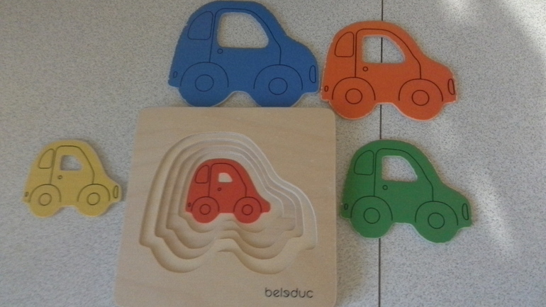 Многослойный пазл "Машинки" Beleduc - это усложненный вариант традиционной рамки с вкладышами. Пять разноцветных машинок различаются по размеру. У каждой из них есть свое место в рамке. Задача ребенка непростая - ему нужно выстроить все машинки по возрастанию