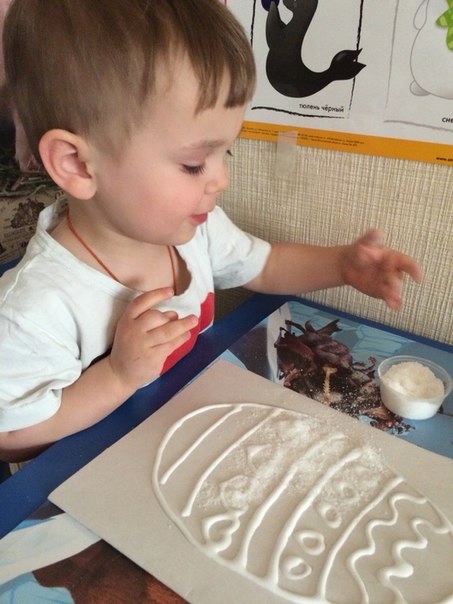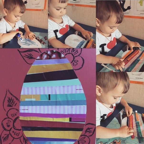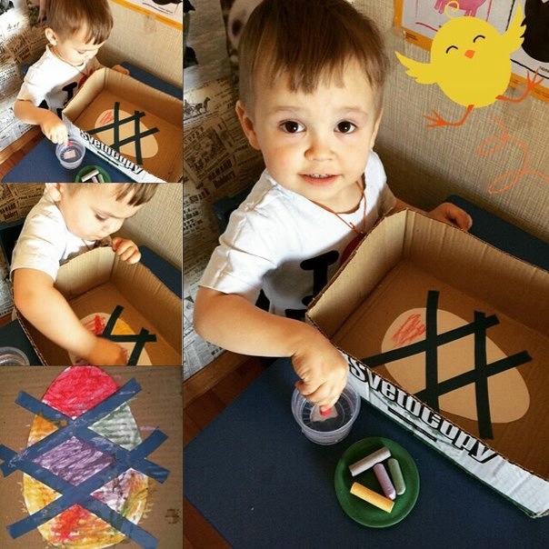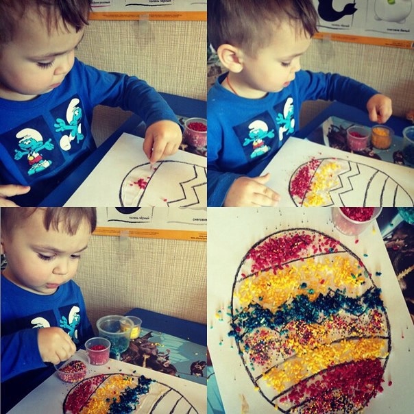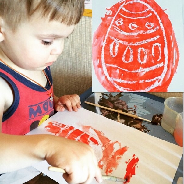 2.нарисовала счечкой яйцо, сынок раскрасил красками