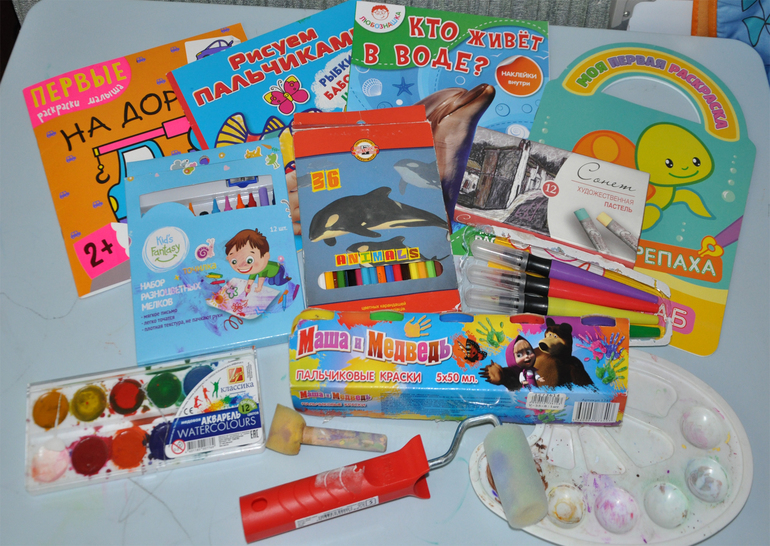Иногда разделяю, а иногда даю сначала одно, а потом другое. Но это если сыну порисовать еще хочется, но вижу, что краски уже надоели. Чаще он сам просит помыть ручки после красок и дать ему мелки или фломастеры