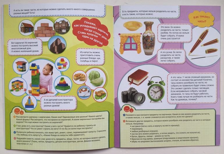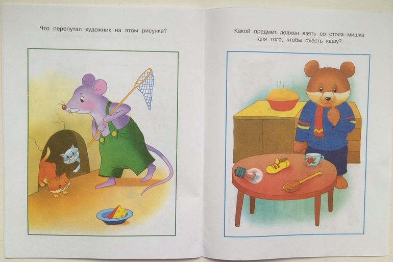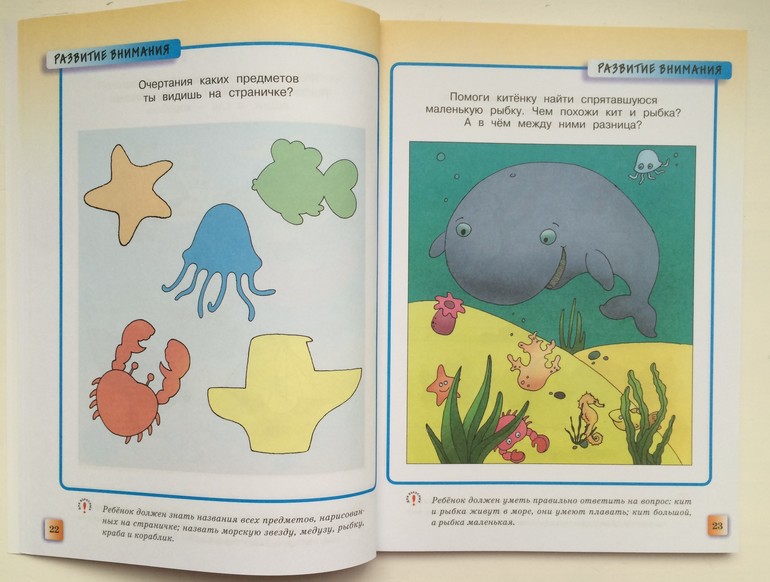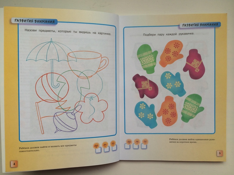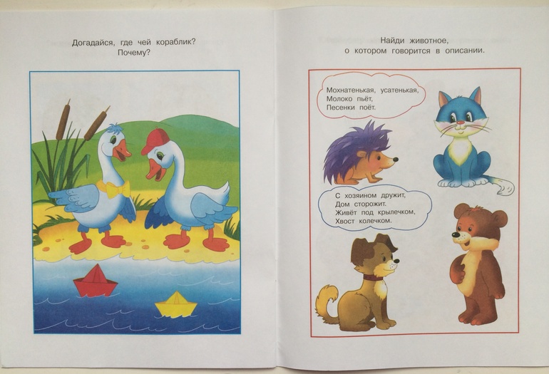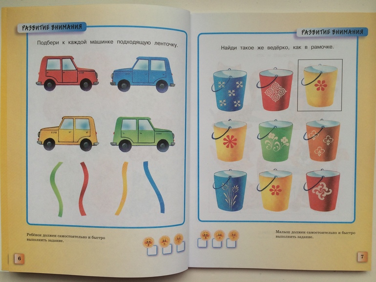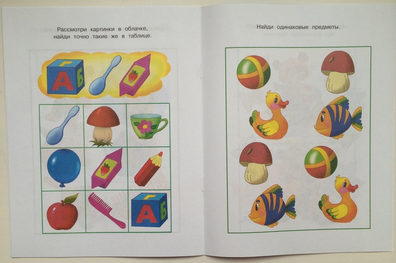 Взяла вроде бы на вырост, но полистав, поняла, что некоторые задания интересные и уже доступные нам. Например, все тот же поиск пар или задания на цветовосприятие. Так что выборочно уже читаем и выполняем.