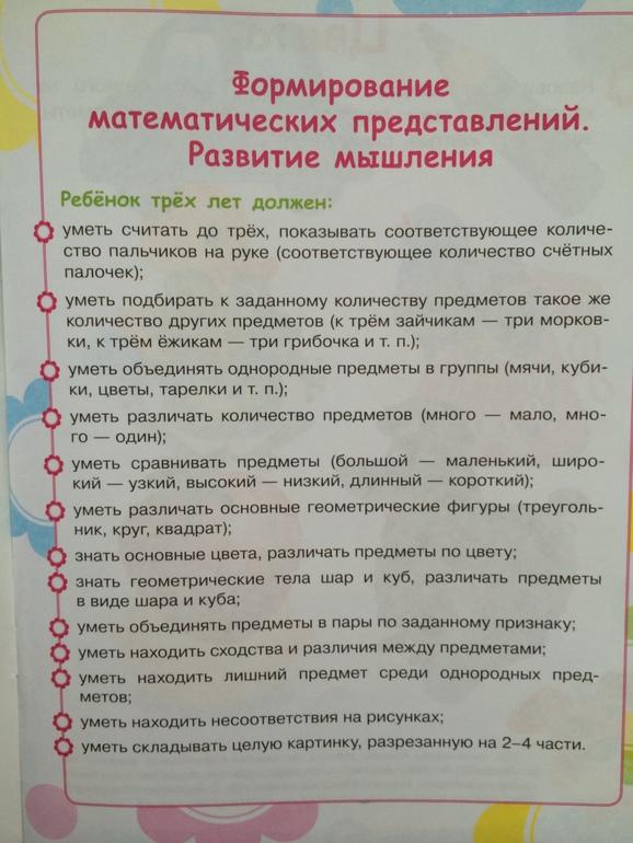 В этой книге также собраны задания по следующим разделам: математика, развитие речи, сенсорика, окружающий мир, внимание, мышление, моторика, а также физическое развитие. Перед каждым разделом дан перечень навыков, которыми уже должен обладать ребенок, приступающий к занятиям.