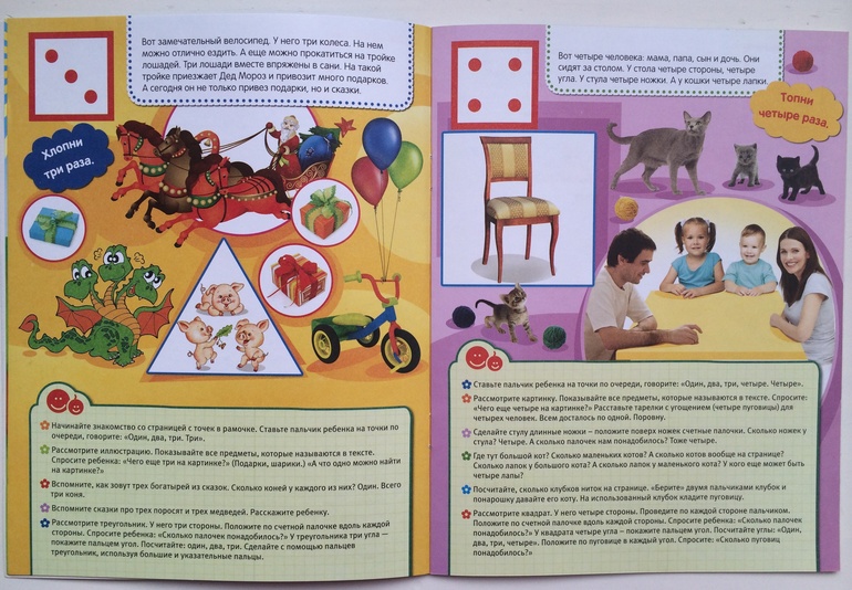 Эта книга появилась у нас самой первой. Ближе к полутора голам у сына появилось стремление считать все, что есть в зоне внимания и видимости - ступеньки, гвоздики на лавочке, камушки на дороге и т.д. Я же всегда рада поддержать интерес. По фото видно как сильно она была нами любима и мы в прямом смысле этого слова затаскали ее до дыр. стараемся и сейчас открывать иногда, т.к. я считаю деткам приятно не только получать новые знания, но иметь возможность похвастаться ими:)