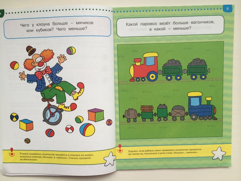 Достаем его почти каждый день, эту книгу,также как и книгу из п.8, сын просит сам. Тренируем с ним логику, внимание, счет и другие навыки. Каждой теме уделено несколько заданий, все коротко и ясно, а главное интересно. Задания надо сказать подобраны очень грамотно, да и иллюстрации яркие, приятные.