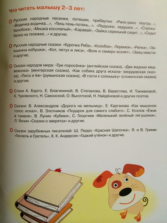 В конце книги дан список рекомендуемой к прочтению в данном возрасте литературы: