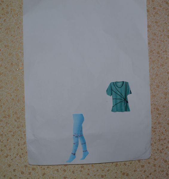 7. Так как, заказанные мной, дидактические материалы еще не пришли, то сами создаем тематический плакат, приклеили футболку и колготки.