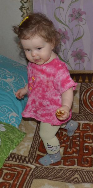 Беру темы так, что одно что-то она точно знает, сегодня это колготки. Как-то на футболках не акцентировала внимание, да и футболки мы практически дома не носили, сейчас только доросла до них.