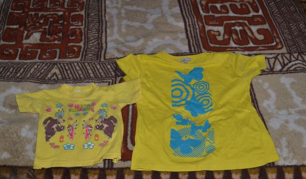 4. На примере футболок ее и старшей сестры познакомились с понятием «Большой и маленький» и «желтый цвет» (красный она уже знает)
