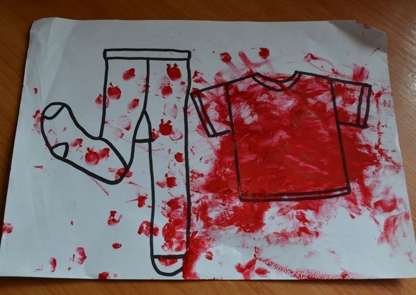 5. Пальчиковыми красками красили колготки и футболку, так как принтер у нас шалит пришлось рисовать самой.