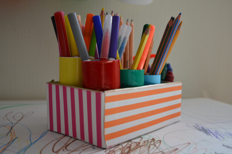 Подставка для карандашей из втулок от туалетной бумаги .