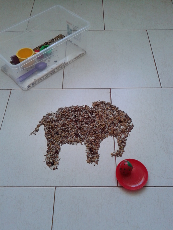 Разное (если затрудняетесь с выбором)Лето - это такое время года, когда трудно найти минутку для занятий, например, привычными пересыпушками, основные игры проходят на свежем воздухе вне дома. Но вот сегодня получилось и позаниматься. Пока Соня пересыпала крупу в разные емкости, к ней в гости пришел .... слон!