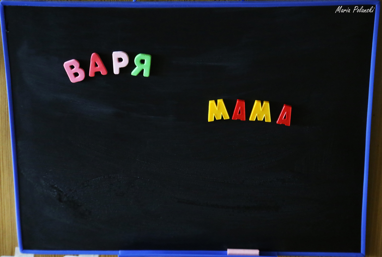 Поэтому для меня всегда было естественным решение знакомить Варю с письменным языком, так же как и с устным, с рождения, и не разжевывая все это по буквам (я же говорю с ней нормальным языком, в нормальном темпе, а не медленно и доходчиво простыми словами))) И суть не в том, чтобы она научилась читать скажем к 3м годам, а в том, чтобы она привыкла к тому, что есть устная речь, а есть ее знаковое изображение. И чтобы все это было естественно и органично усвоено, так же как происходит усвоение устной речи и визуальное познание окружающего нас мира.