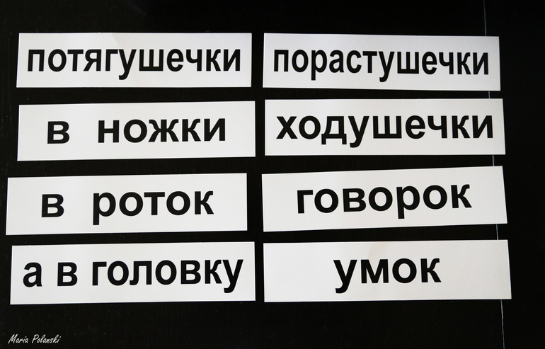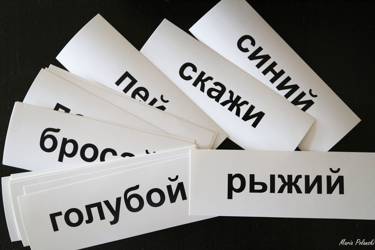 Сразу скажу, что формы показа менялись. Иногда я показывала их как флеш-карты друг за другом, иногда расставляла на соответствующих предметах мебели или приклеивала на стену.