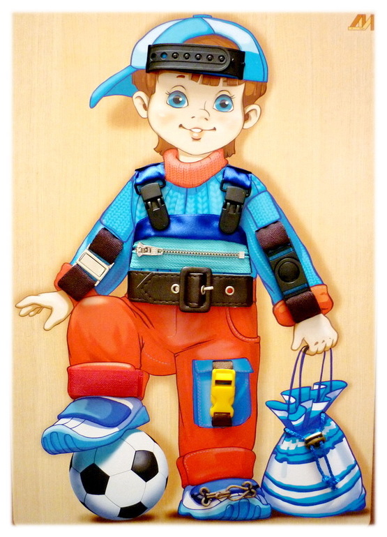 Главная идея игрушки обучить малыша застегивать и растегивать молнию, застежки, липучки, крючочки и фиксаторы.