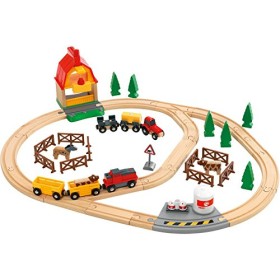 Большой набор ''Загородная ферма'' станет любимой игрушкой у Вашего малыша. В состав набора входит железнодорожное полотно со стрелками, трактор c тележками, небольшое сооружение для погрузки баллонов, 2 фигурки животных, загон для коровы и лошади, знак, елки и поезд с двумя вагонами, предназначенными для перевозки животных и грузов. Двери вагонов открываются, образуя сходни, по которым животное может подняться. Набор состоит из 50 деталей. Батарейки приобретаются отдельно. Набор упакован в красивую подарочную коробку. Поезд Брио работает от батареек и может самостоятельно передвигаться. Трактор можно катать по железной дороге вручную. ''Загородная ферма'' понравится и мальчикам, и девочкам. Ваш ребенок сможет катать корову или лошадь в вагонах, перевозить и разгружать важные грузы с помощью магнитного крана, пропускать животных через дорогу, высаживать свой лес из елок, не дать животным выбежать на дорогу во время движения поезда, использую заграждения, устроить аварию на железнодорожном полотне и даже придумать интересные истории про обитателей фермы и перевозку груза. Благодаря магнитной сцепки поезда Brio могут соединяться с любыми другими вагонами этой фирмы. Игра с набором железной дороги "Загородная Ферма" BRIO купить положительно влияет на психику, развивает усидчивость, фантазию, творческие способности и внимательность.