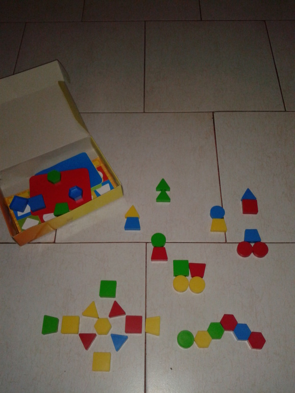Я вырезала из картона карточки соответствующих цветов для сортировки и они теперь живут вместе с лото в коробке. А вообще игрушка классная! Можно строить домики, машинки, девочек и мальчиков, собирать такие модные нынче мандалы.