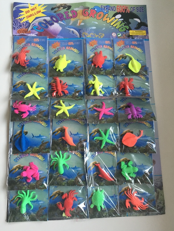 Выращивали в воде животных, покупала набор на Амазоне, за три дня фигурки увеличились в несколько раз. Потом играли с ними просто как с фигурками