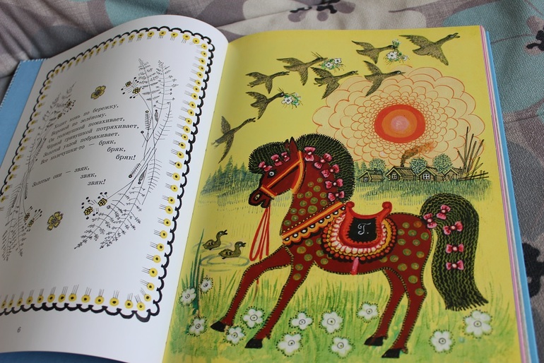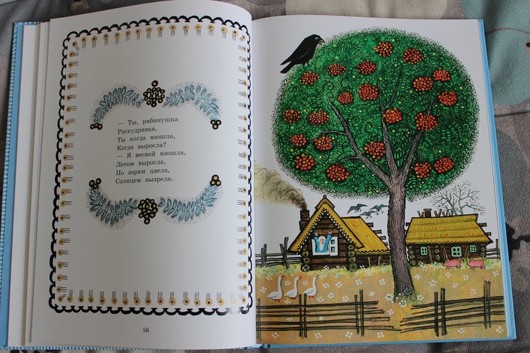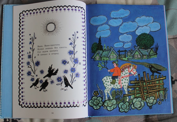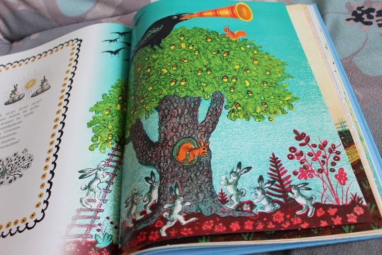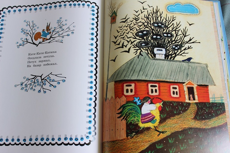 Меня камушки не особо смутили, книжка детская, нарядная, праздничная, большая, пестрая. Я бы даже сказала - разгульная, шумная, шуточно-прибауточная, как сама Русь. Видно, что книжка очень-очень старается понравиться тебе с первого взгляда.