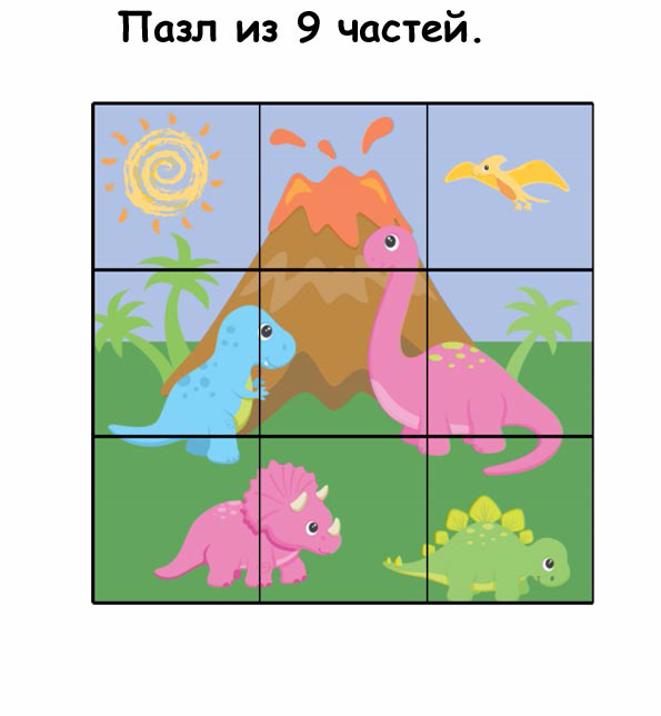 На цветной бумаге распечатываем картинку и разрезаем на части. малышу предлагаем собрать паззл. Для многоразового пользования картинку можно сначала наклеить на плотный картон, а потом уже разрезать.