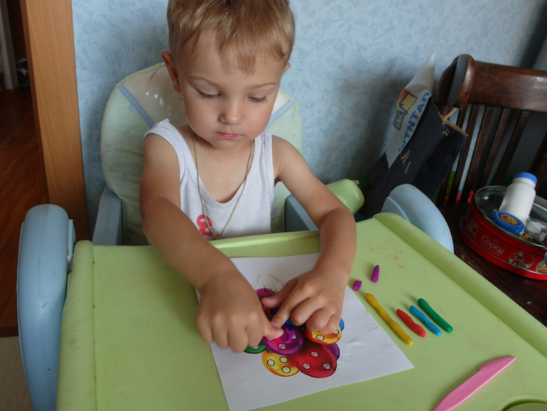 Лепили из пластилина.