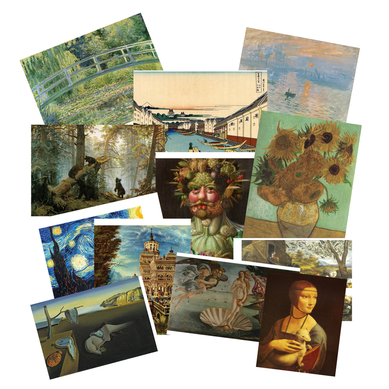 Я подготовила комплект из 18 очень разных картин. Художники из самых разнообразных эпох, представители самых разнообразных стилей.