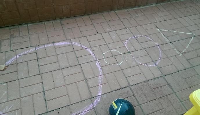 Фигуры выучили давно, к полутора годам. Выучили очень легко. Мелом рисовала на асфальте большой квадрат, круг, треугольник. И дети прыгали в ту фигуру которую я называла. Очень веселая и подвижная игра.