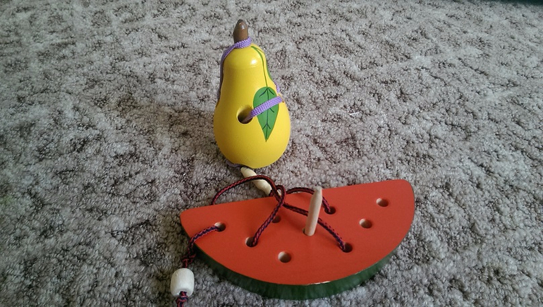 Шнуровки, деревянные половинки, которые можно запихивать в отверстия.